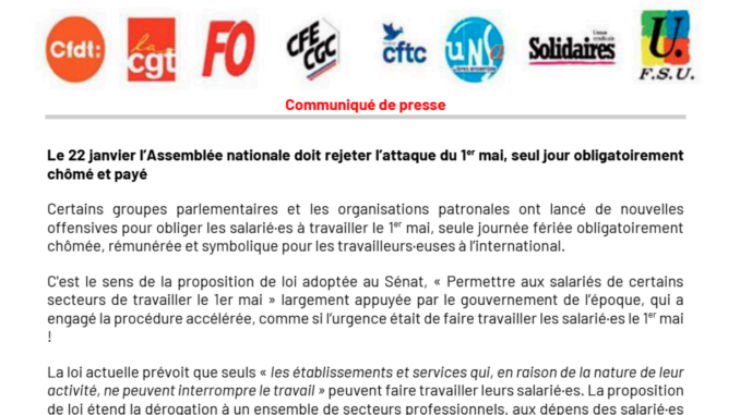 offensives pour obliger les salarié es à travailler le 1er mai, seule journée fériée obligatoirement